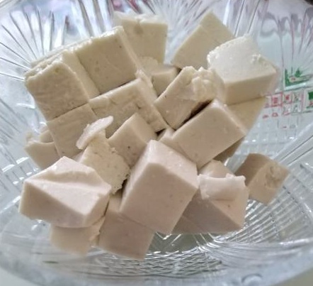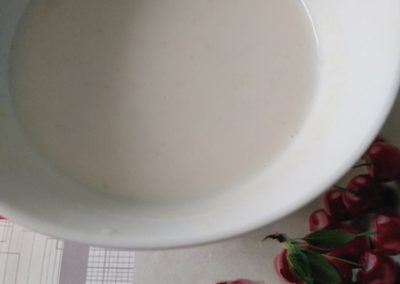 Ez alatt az idő alatt a bőrkepépet felolvasztjuk (Ezt lehet mikróban is készíteni, de én szeretem magam felügyelni a munkafolyamatokat, ezért én már rászoktam, hogy gőz fölött olvasztom fel az összekockázott bőrkepépet(5).