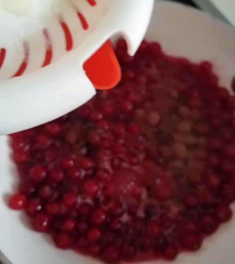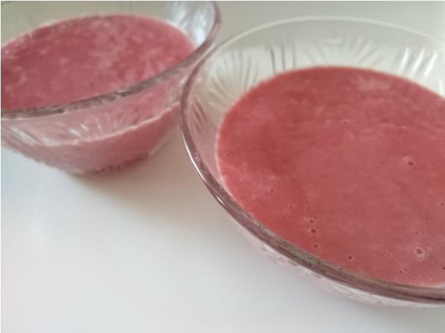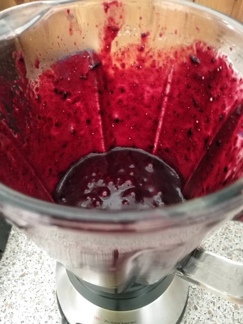 A gyümölcsöt turmixgéppel összedolgozzuk (7), majd a bőrkepépet is hozzáadjuk. A forró vízből kb. 2 – 3 dl még teszünk hozzá. Lehet, hogy csak kétszerre fér bele a turmixgépbe.