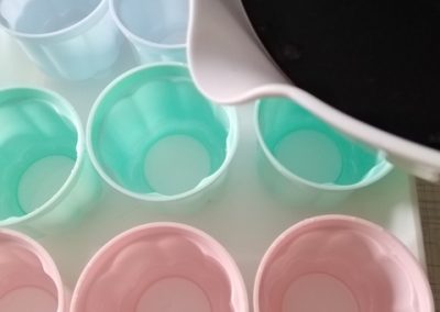 Lehet poháradagokat készíteni, vagy az egészet egy nagyobb formába, amit később kiborítunk, és szeletelünk (16, 17).