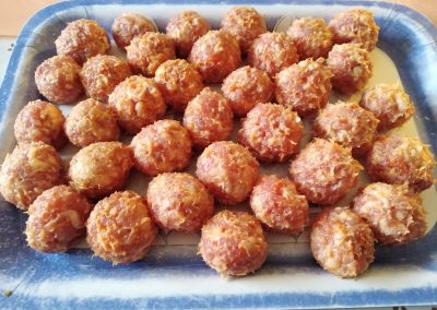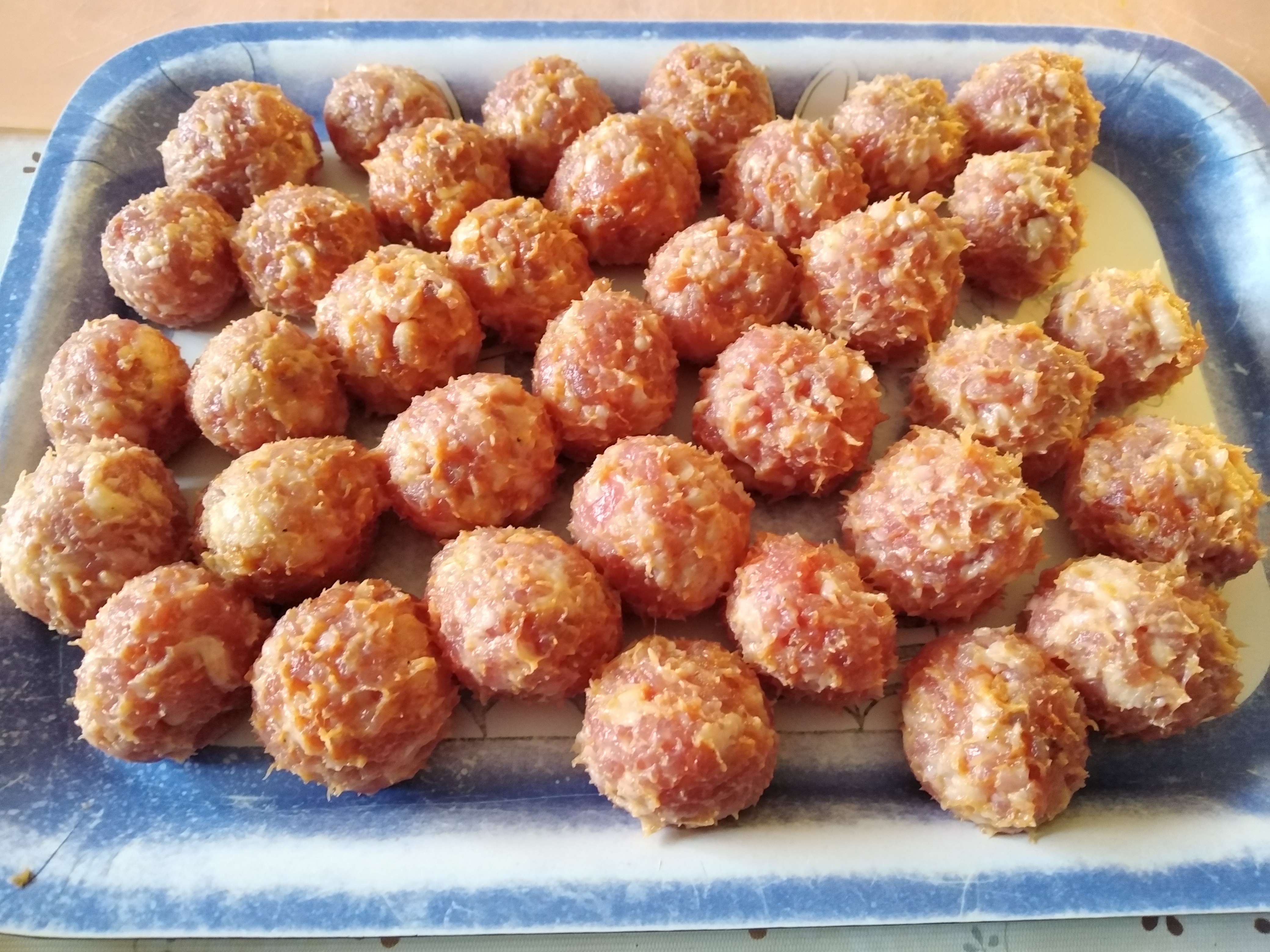Amíg a tök összerottyan, elkészítjük a húsgolyókat. Én ezt is előző nap beízesítettem ( tojással, sóval, borssal, pirospaprikával, szerecsendióval fúszereztem), csak a golyókat kellett megformáznom (10).
