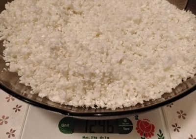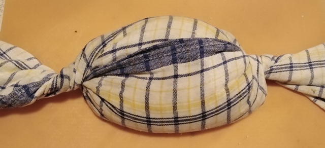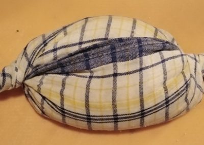 Amikor letelt az 5 perc egy konyharuhára terítjük, és becsomagoljuk, mint egy szaloncukrot. A két végét ellentétes irányba kezdjük el csavarni (5, 6). Ha kéznél van egy férfi, vegyük igénybe az erejét. Nekem egyedül kb. 70 – 80 ml sikerült kipréselnem (7).