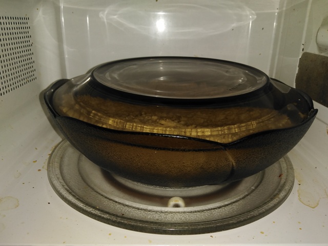 Egy üvegtálba tesszük, megsózzuk, és a mikróban 5 percig lefedve főzzük (3, 4).