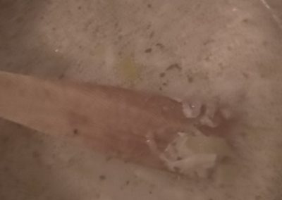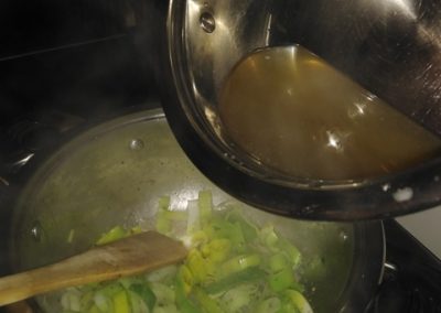 Visszaöntjük a fazékba, és még vizet öntünk hozzá, amennyi szükséges.