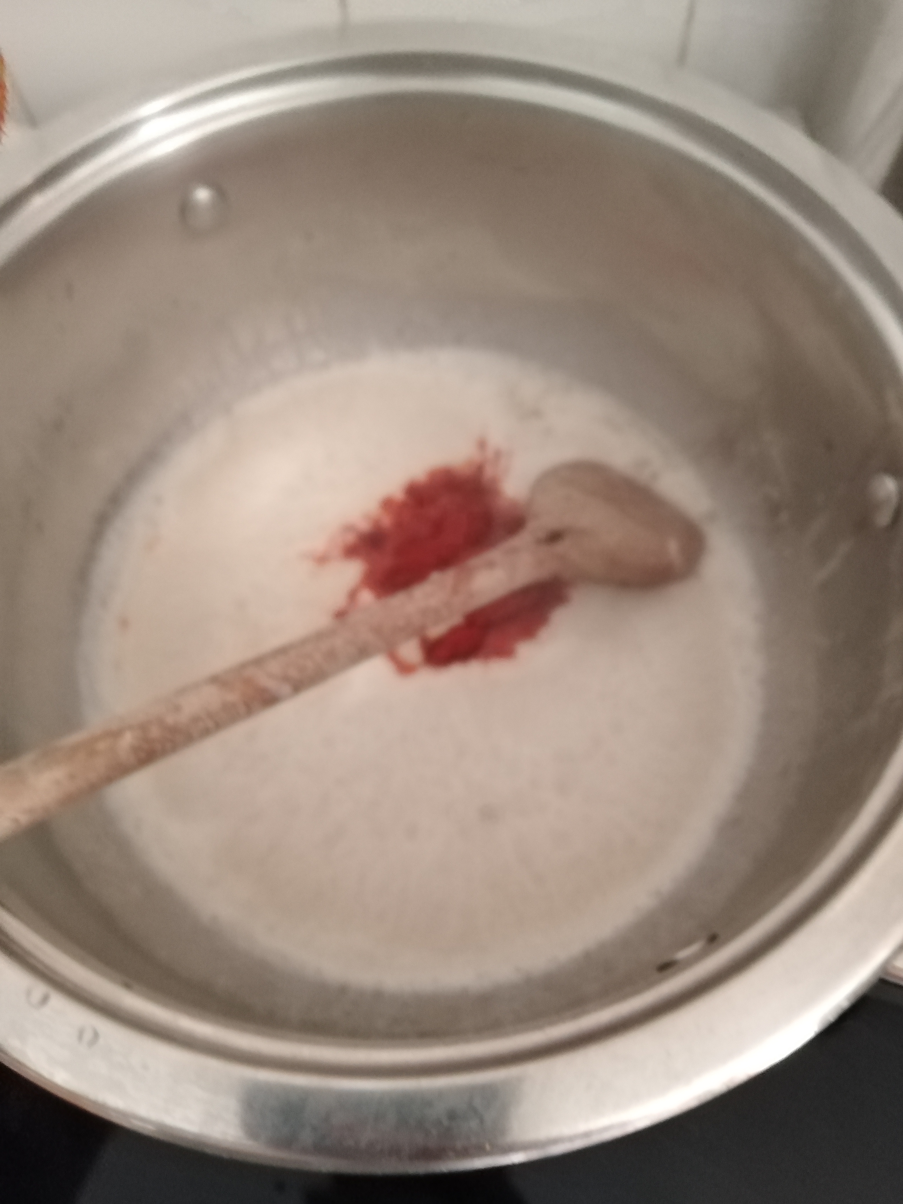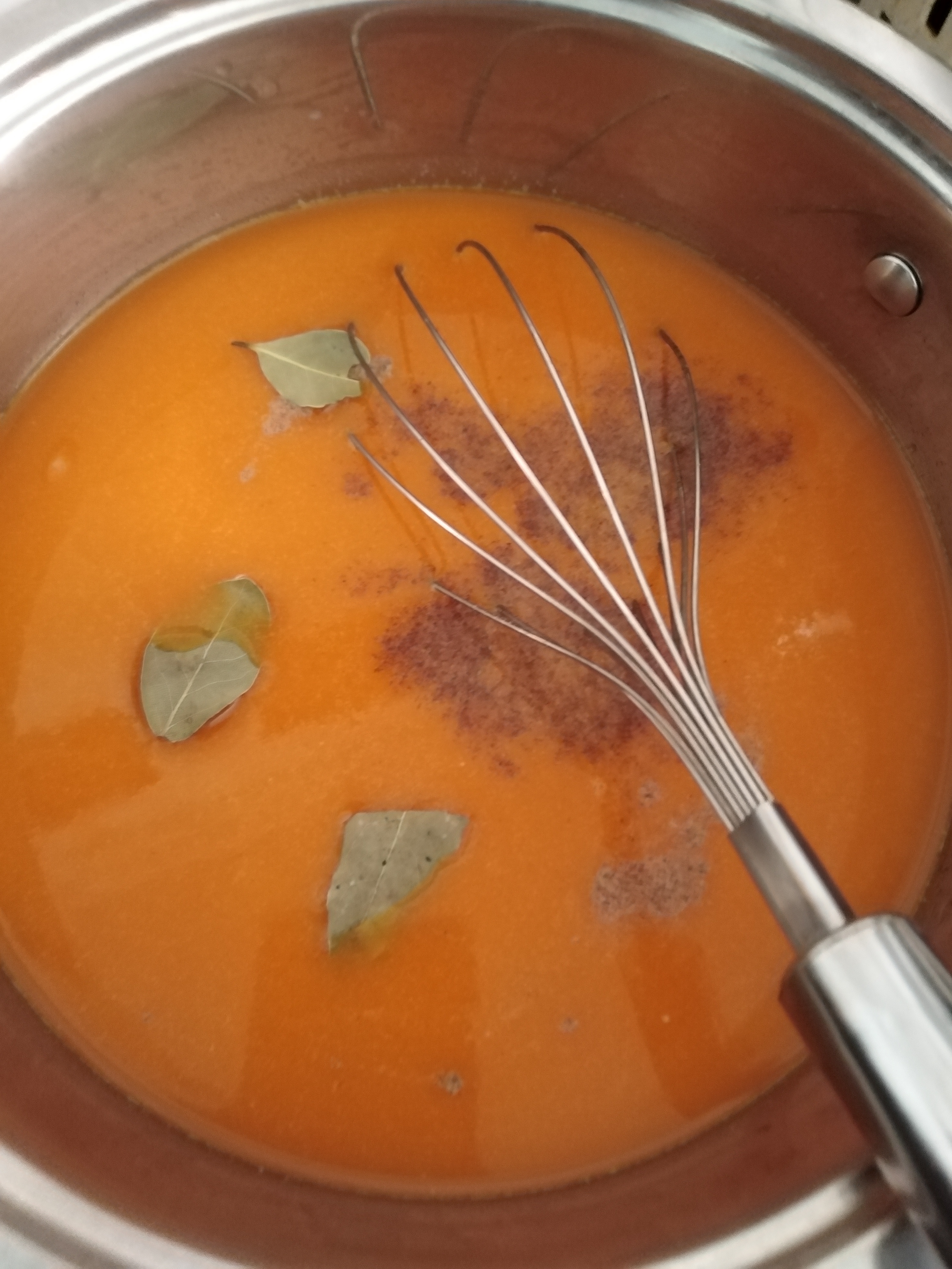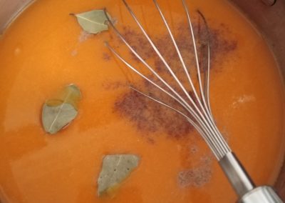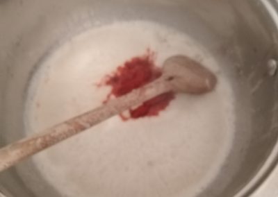1 TK pirospaprikát szórunk rá (4), amivel elkeverjük, majd felengedjük a vízzel.