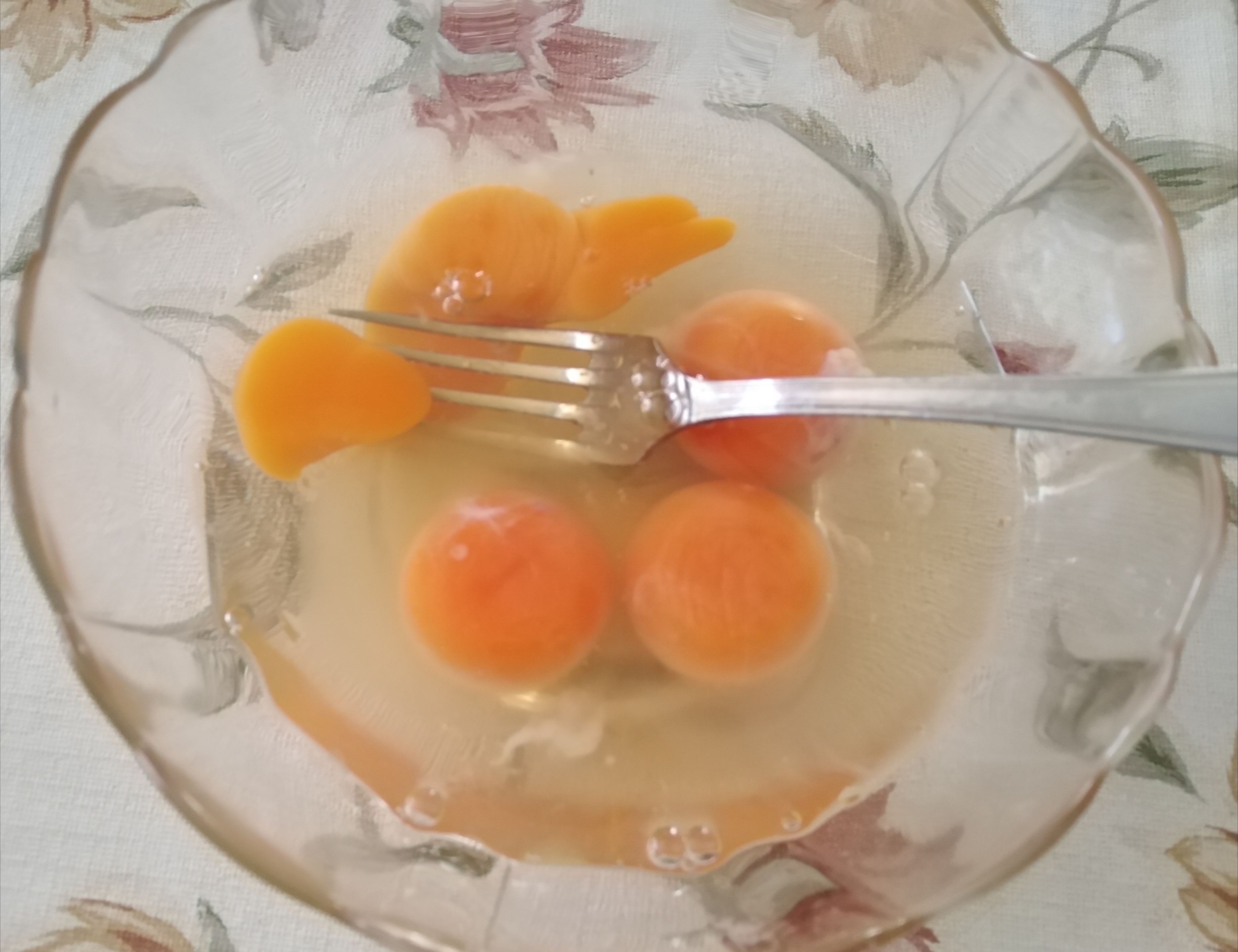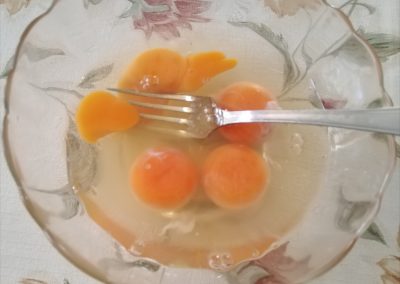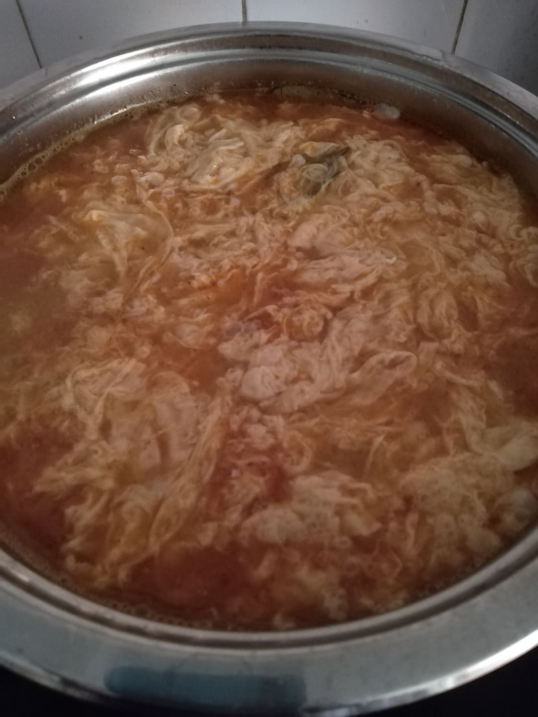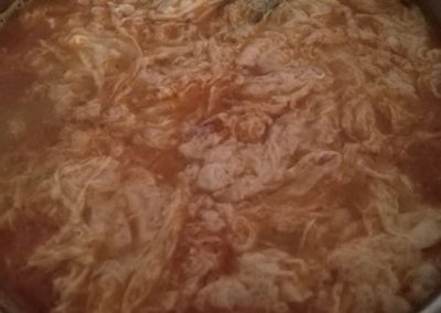 Amikor a lé felforr, belekeverjük a felütött és kissé felvert tojásokat (6). 2 -3 percig főzzük, és már kész is (7).