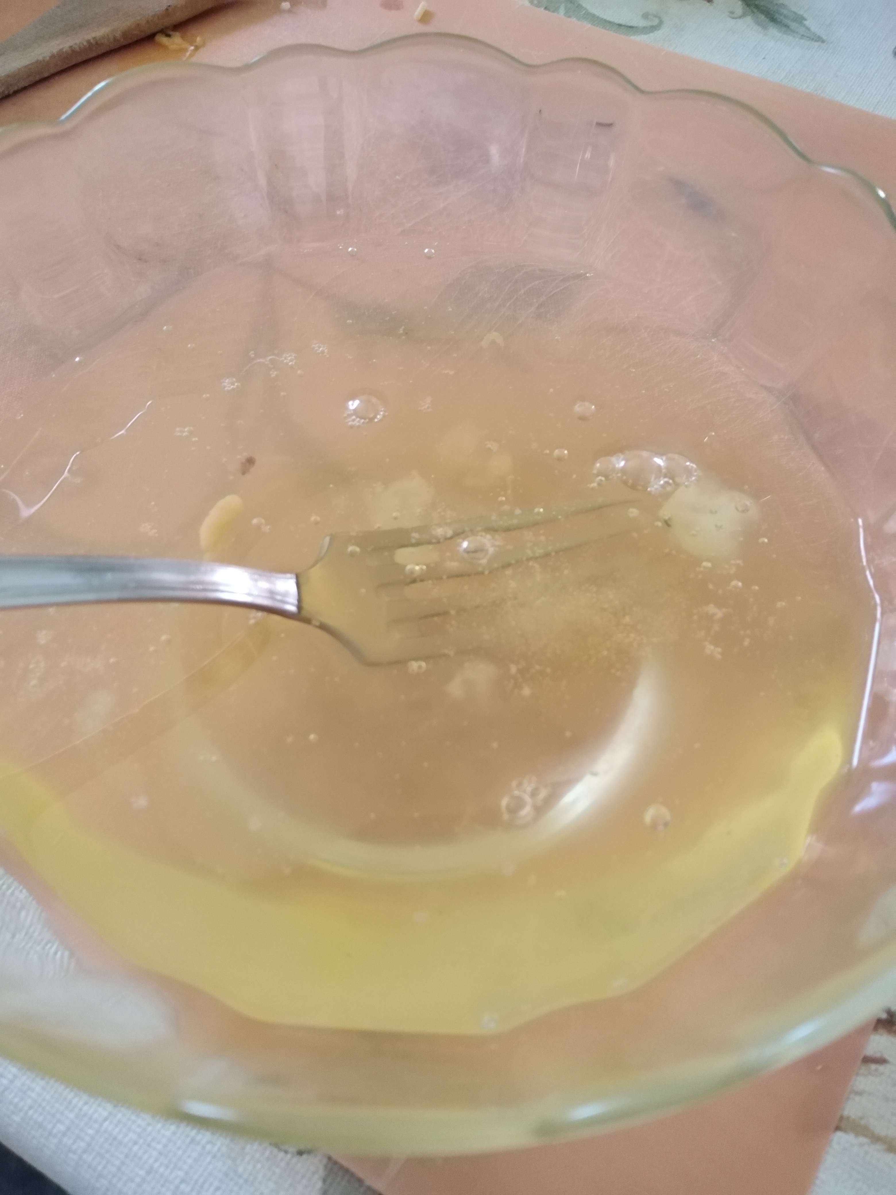 A tojás fehérjébe is teszünk 1 TK sót, és villával kissé felverjük.