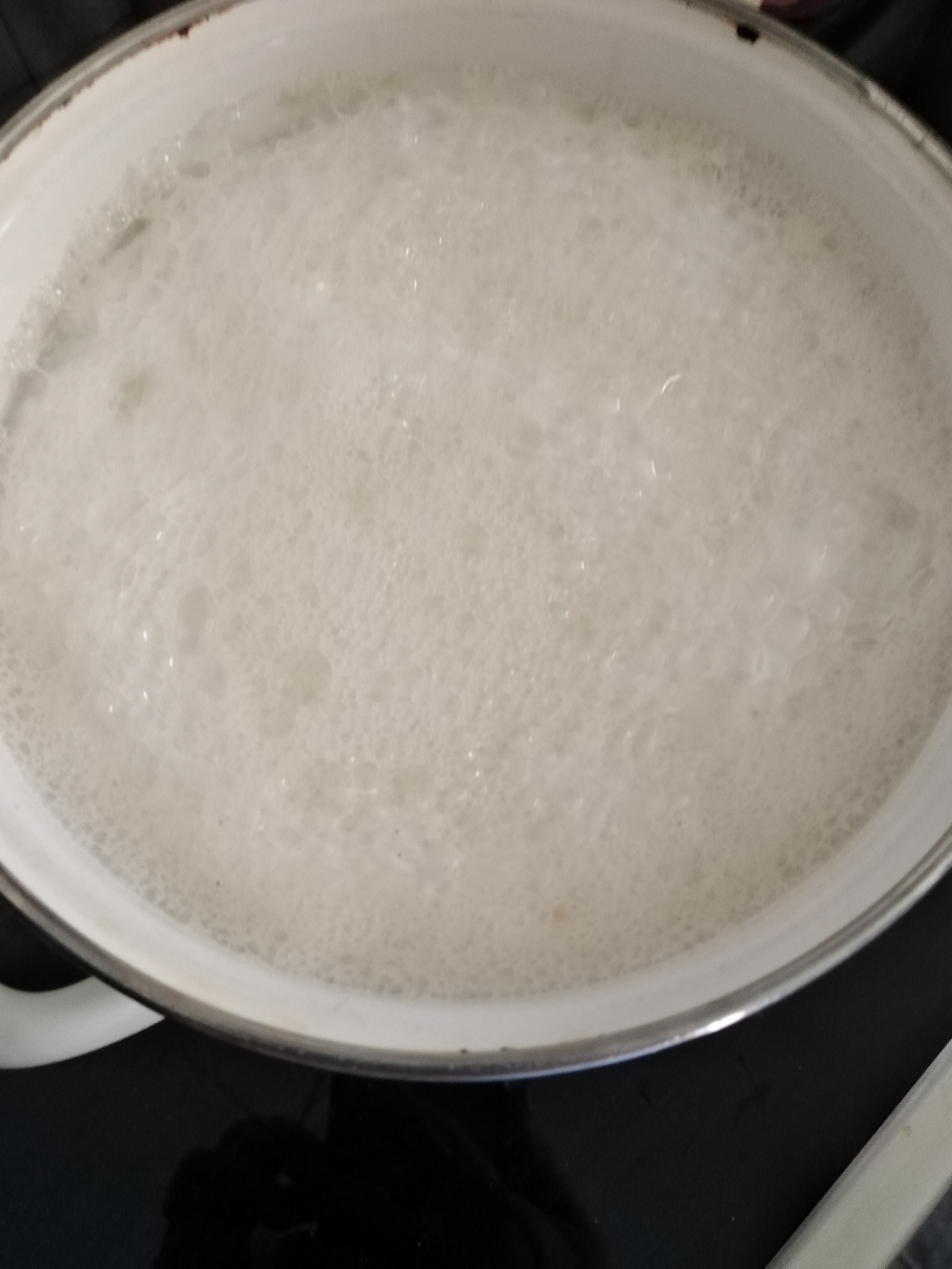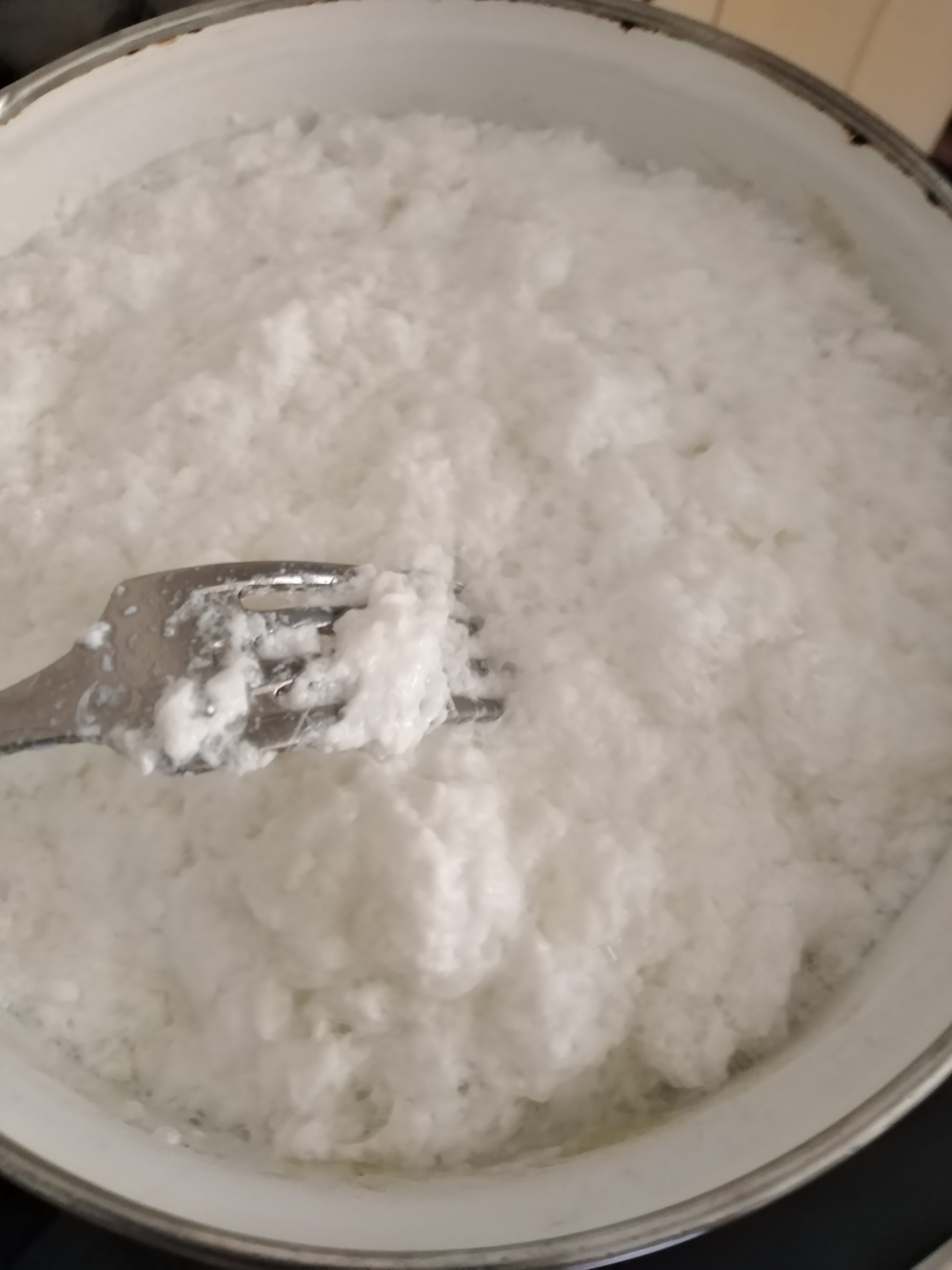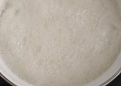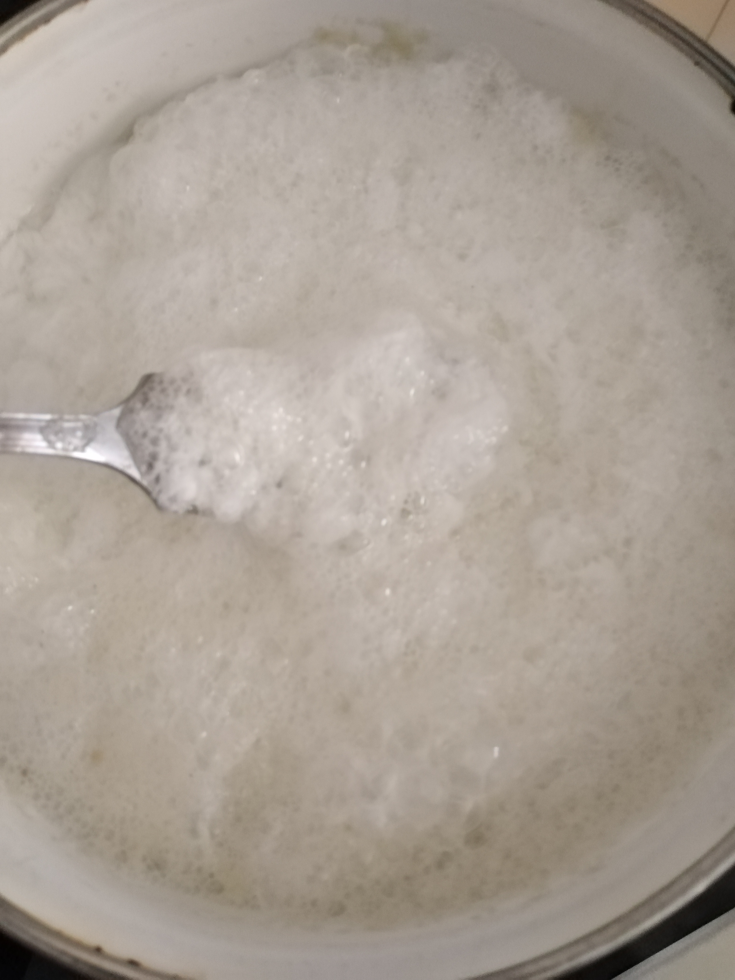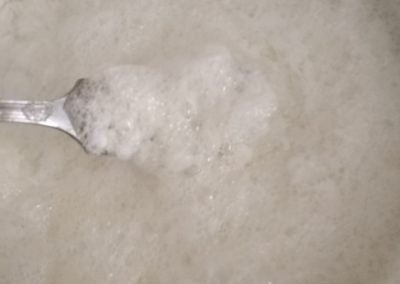 Amikor a víz forrni kezd, belekeverjük a fehérjét.