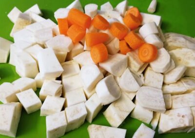 Ezeken a fotókon 1 kisebb darab sárgarépa is szerepel – nem szükséges, jelen esetben a színe miatt került bele, és azért, mert a zellerből hiányzott egy kis darab.