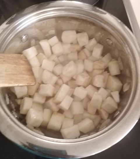 Nagyon kevés vizet öntünk rá, épp csak annyit, hogy le ne égjen (kb. 1 dl).