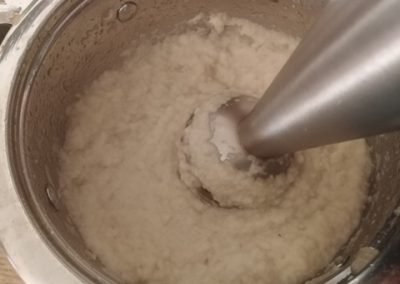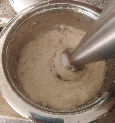 Lefedve puhára főzzük a zellert, majd botmixerrel esetleg konyhai aprítóval vagy turmixgéppel pürésítjük (3).