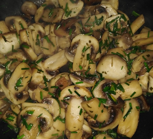 A zsírt felhevítjük (2), és rádobjuk a gombaszeleteket.